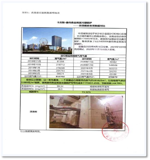 項目情況:中茂城項目位于長沙市長沙縣星沙CBD核心區(qū)域。原使用4臺真空鍋爐,2020年改造完成,采用6臺1400kW冷凝鍋爐。